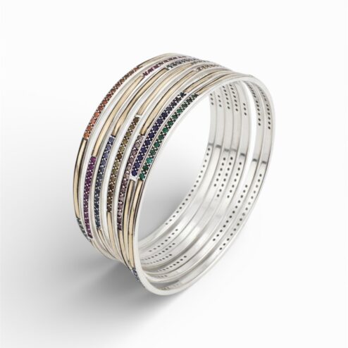 Sterling Silver 7-Piece Multicolor Cubic Zirconia Bracelet