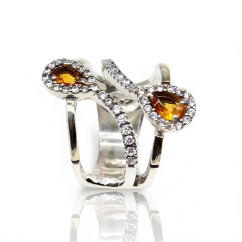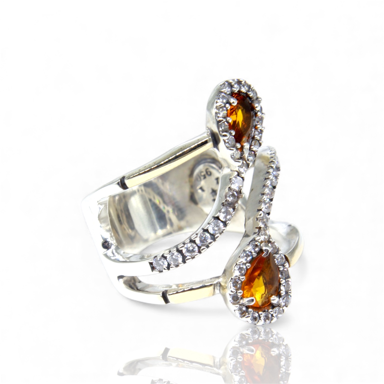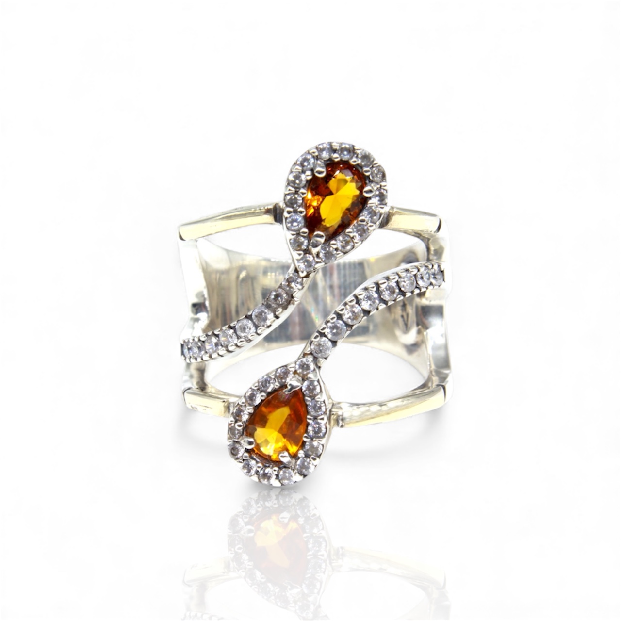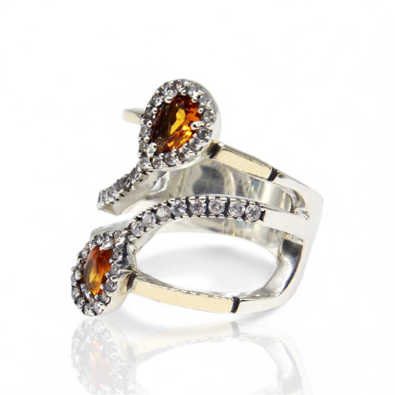 The Mia Amber ring is a stunning handmade creation and Meticulously crafted with Sterling Silver, cubic zirconia and enhanced with a luxurious gold plating, the ring exudes both elegance and durability. Its hypoallergenic nature ensures comfortable wear, while its undeniable beauty invites women to embrace this exquisite piece and showcase their unique style with confidence.